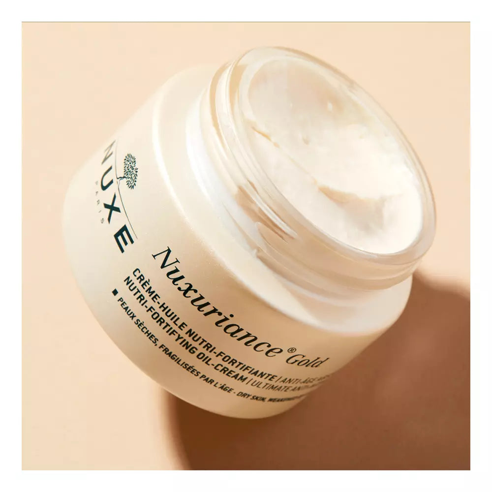 Esta Crema-Aceite Nutrifortificante con Células Bi-Florales de Azafrán y Buganvilla ofrece un poder antiedad a las pieles secas y fragilizadas por el envejecimiento.