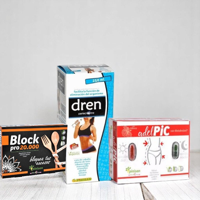 1-Dren Pinisan 250ml: Jarabe con Cola de caballo, Diente de león, Rábano negro, Manzanilla, Ortosifón, Abedul, Ulmaria e Hinojo, que ayuda a la función de eliminación del organismo.